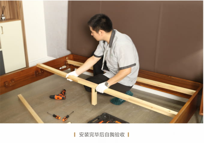 所有家具安装完毕后,需要严格检査各部位安装情况,安装完毕后应进行自我验收,验收标准为: