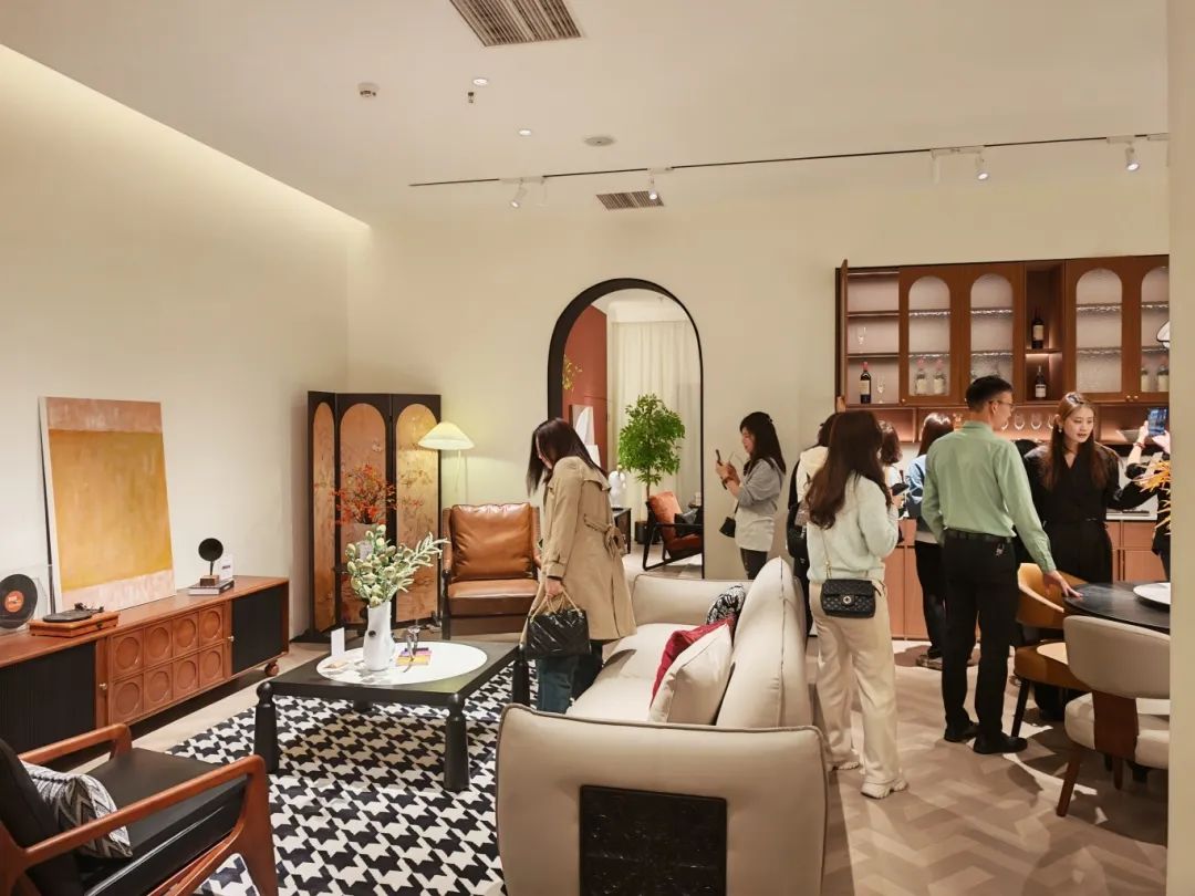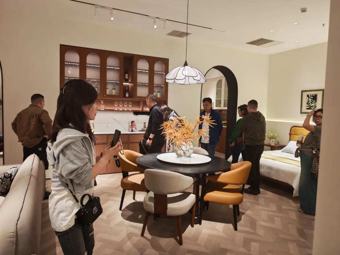 新品发布品鉴会现场,AG闲庄·中古全案凭借独特的空间布局,创新的时尚设计,优质的材料细节以及精心的场景营造,吸引了全国优秀经销商及业界嘉宾们的目光,他们沉浸在高级的美学世界里,感受创新与品质交织的魅力。AG闲庄·中古展厅里人潮涌动,众多经销商都对中古全案新品的创新设计称赞有加,现场签约不断,气氛热烈。