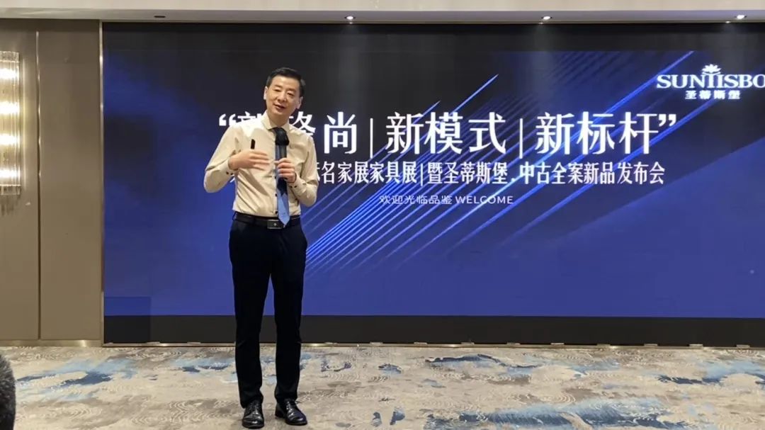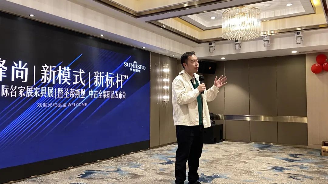 接下来,AG闲庄·工业营销部副经理吴天喜先生为我们重磅揭晓了2025春季新品中古全案系列和新古典全案升级新品,他从选材、设计、风格、工艺等方面进行了全面的讲解,并提到此次中古新品的全案模式是以更具设计感的创新方式,给予消费者整体性的体验感升级,助力大家在激烈的市场竞争中,突显差异化的优势,实现业绩的飞跃式增长。